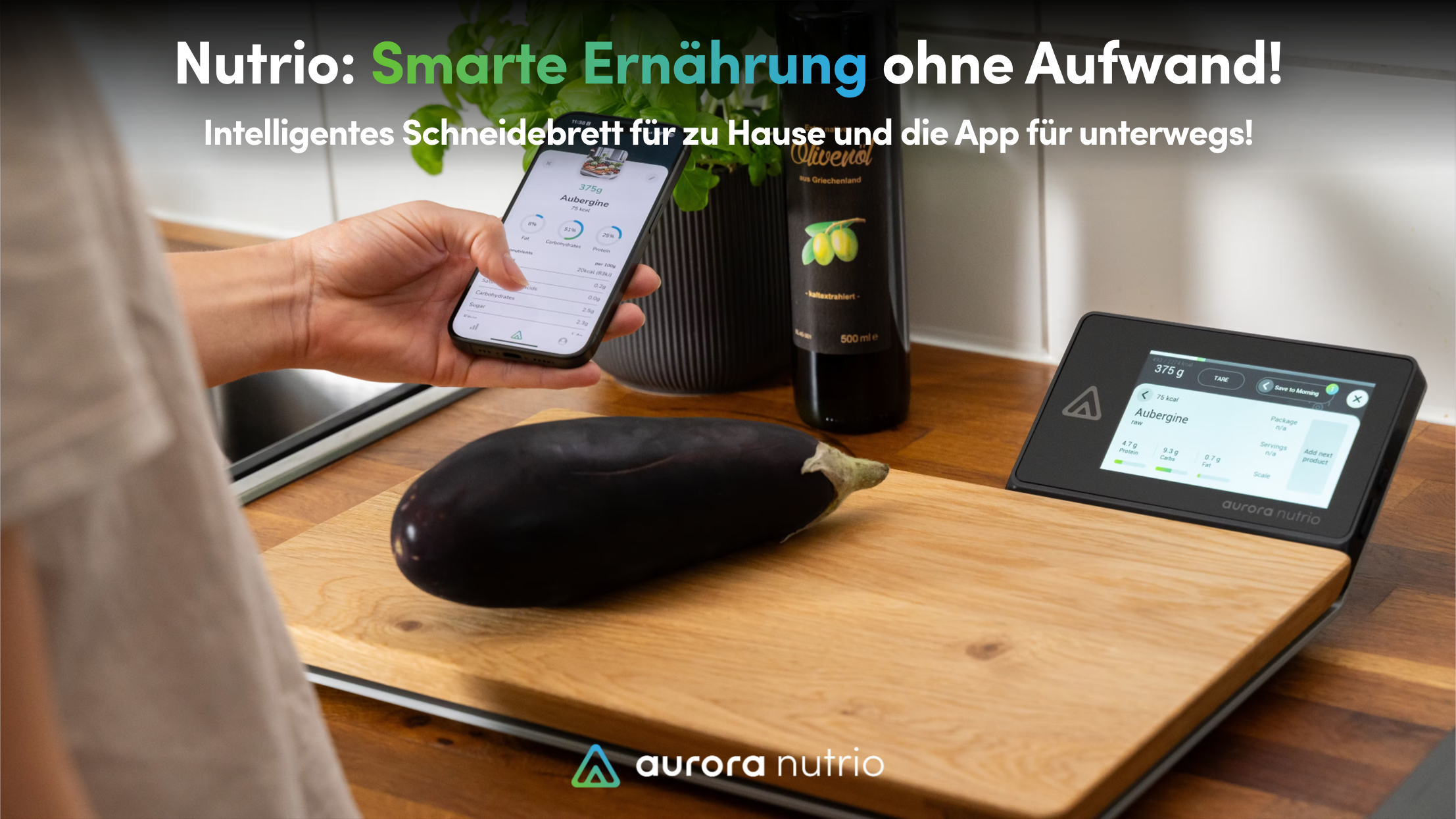 • Einzigartige Technologie: Nutrio kombiniert Waage, Schneidebrett und KI-Erkennung in einem patentierten Produkt.