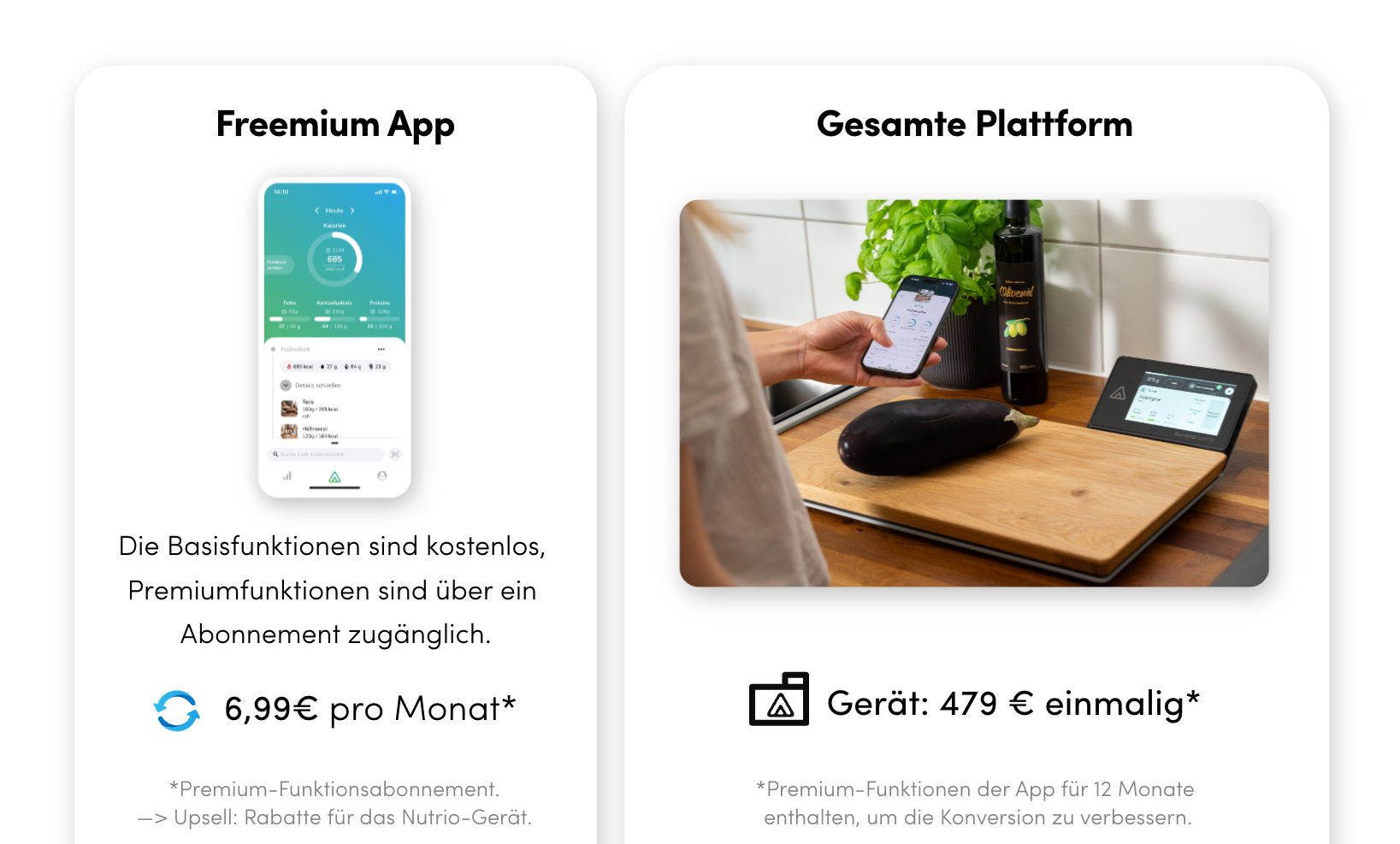 1. Hardware-Verkauf: Nutrio-Geräte werden über unseren eigenen Online-Shop verkauft (D2C). Der Verkaufspreis liegt bei rund 479 €.