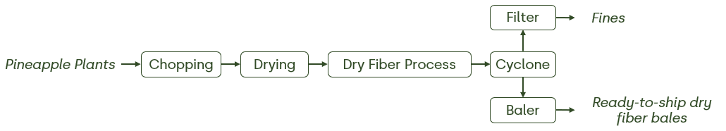 Through long-term collaborations, we have been able to build reliable partnerships and thoroughly test the raw material sources. We work with various suppliers of whole pineapple plants, pre-chopped plants, dried plants, crowns, silage bales, or residues from biogas projects—both from Costa Rica and Asian countries. This allows us to secure sufficient raw material of the right quality, especially during the initial phase within the framework of contract manufacturing.
