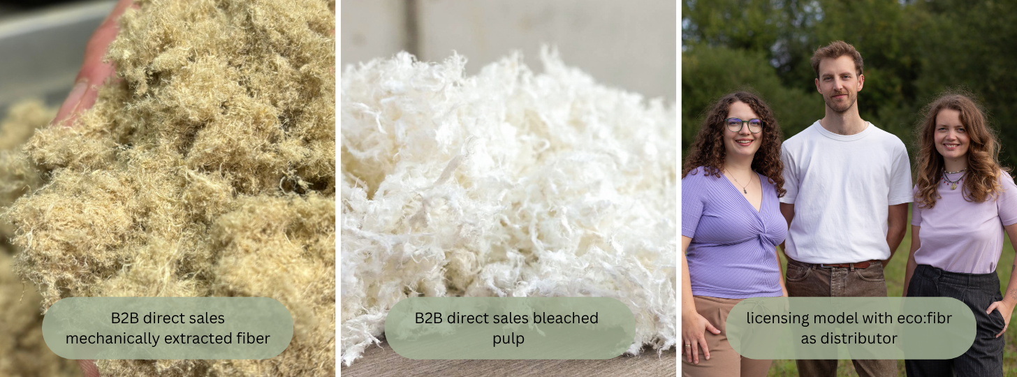 Our process can also be applied to other plant residues such as sugarcane or rice straw. This creates a platform technology for sustainable fibers, enabling diverse applications across multiple industries. Our product and process development is conducted in close collaboration with research institutions and industry partners, such as Hahnemühle, Grünperga, TU Dresden, and Leibniz University Hannover. As a result, we already have a strong network and a product aligned with our future customers!