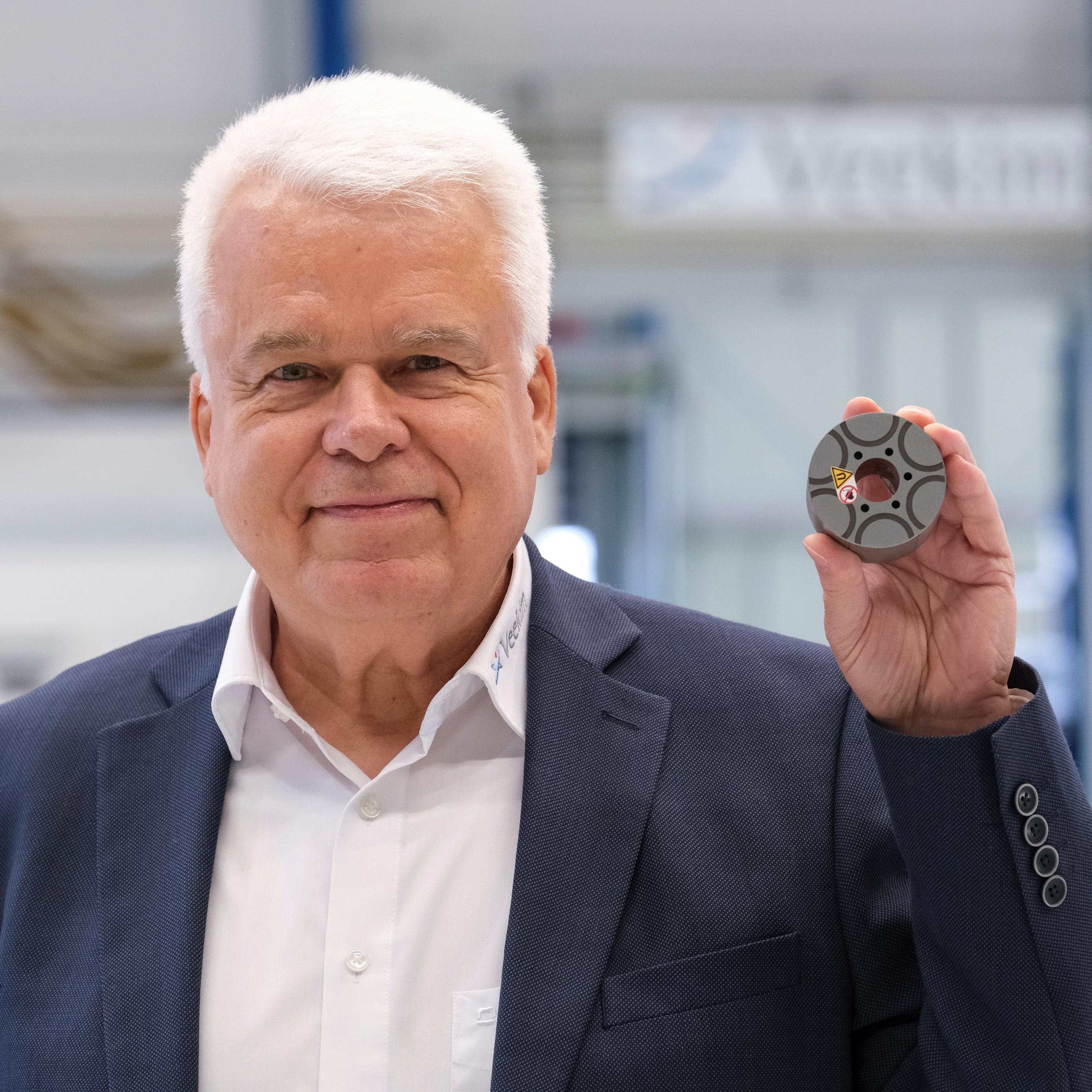 So übernahmen wir im Jahr 2020 ein stillgelegtes Werk eines Automobilzulieferers. Da dieser über ähnliche Produktionstechnologien verfügte, konnten wir auch sehr qualifiziertes, technisches Fachpersonal übernehmen. In diesem Jahr (2023) gelang dann der Durchbruch – wir konnten den Prototypen des Seltene-Erden-freien Rotors/Stators entwickeln und haben diesen patentiert. Nun beginnt die ausgedehnte Markteinführung dieses „Grünen Motors“.